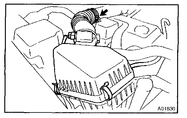 d. Loosen the 4 clips, and remove the air cleaner cap together with the MAF meter.