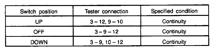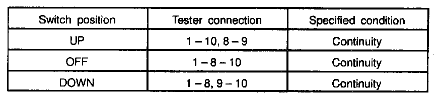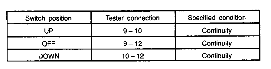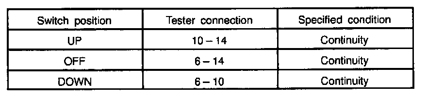 INSPECT POWER WINDOW MASTER SWITCH CONTINUITY