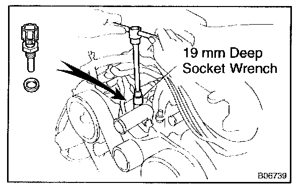 b. Using a 19 mm deep socket, install the ECT sensor.