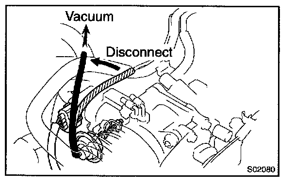 c. Disconnect the vacuum hose from the throttle opener and plug the hose end.