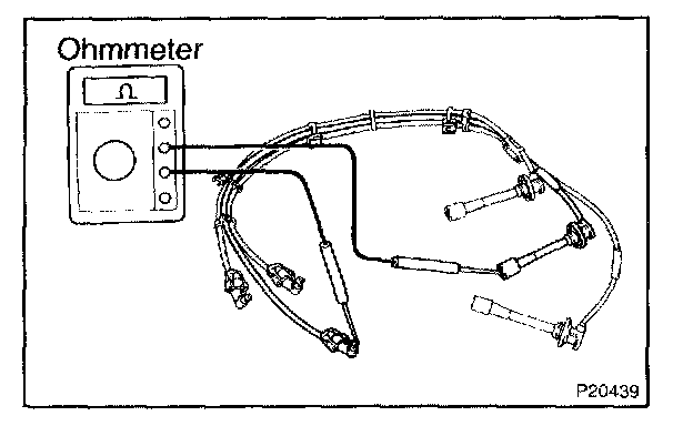 c. Using an ohmmeter, measure the high-tension cord resistance.