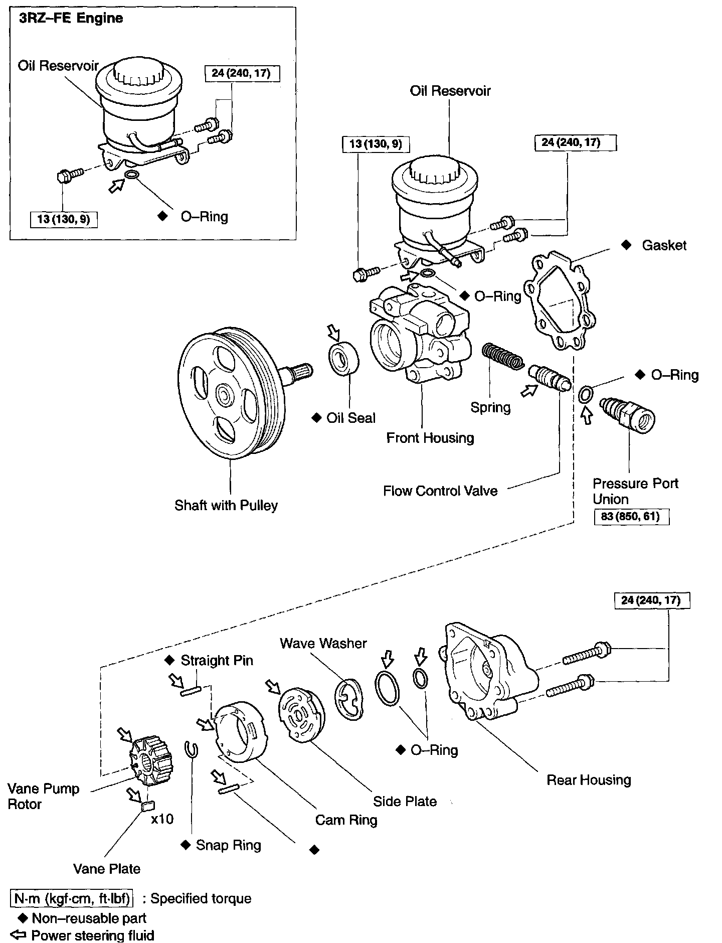 POWER STEERING VANE PUMP REPLACEMENT AND OVERHAUL W/ RELATED COMPONENTS