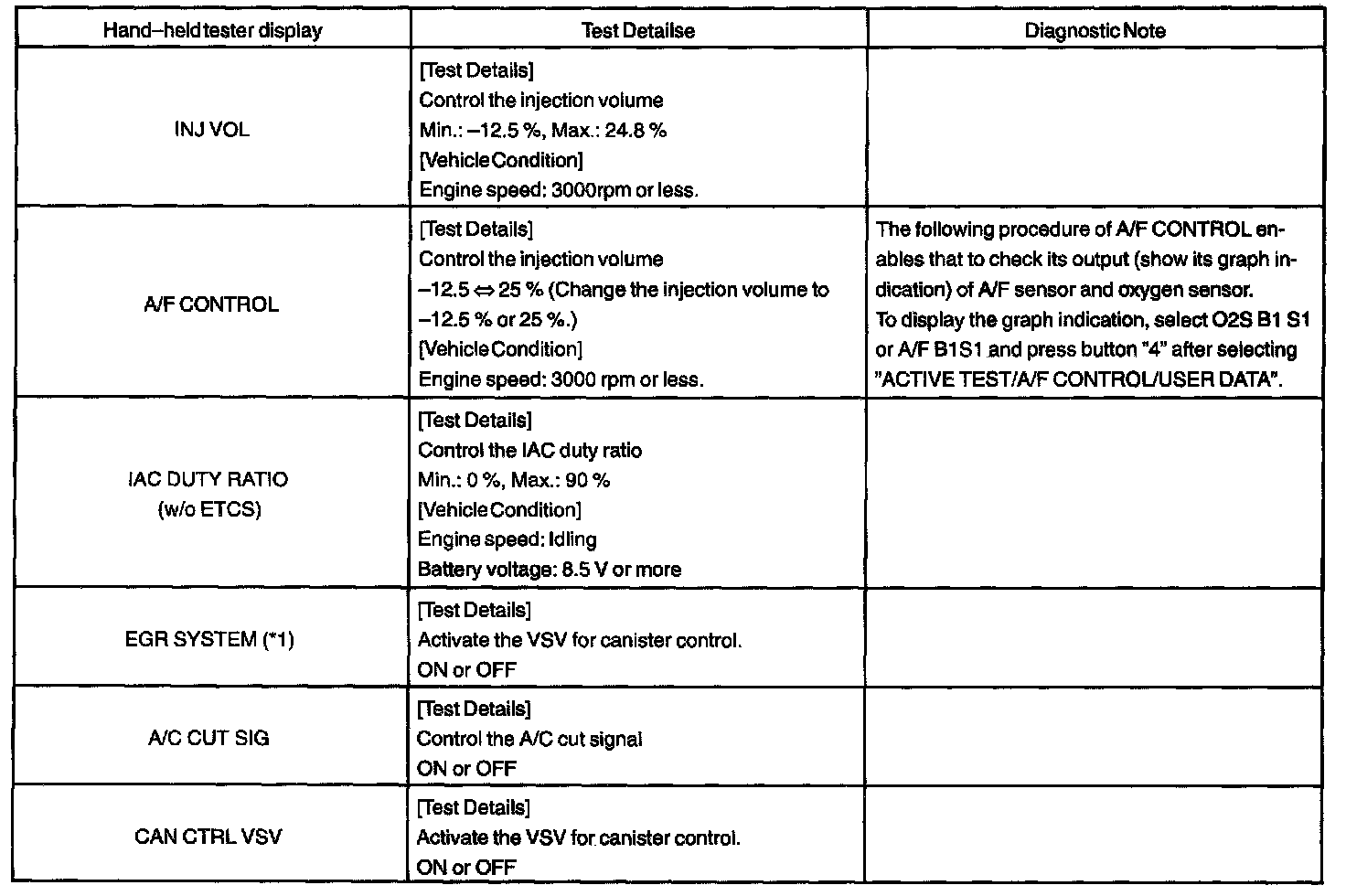 Performing the ACTIVE TEST using the OBD II scan tool or Hand-held tester allows the relay, VSV, actuator and so on to operate without parts removal. Performing the ACTIVE TEST as a first step of troubleshooting is one of the method to shorten the labor time.