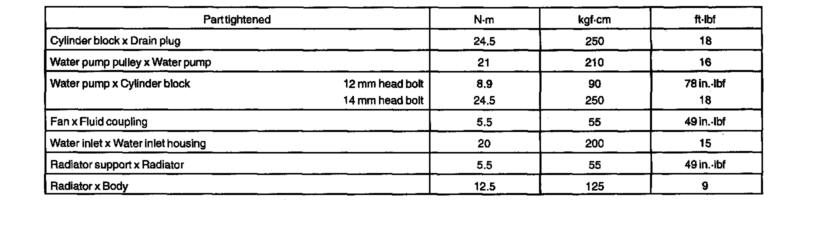 Torque Specifications