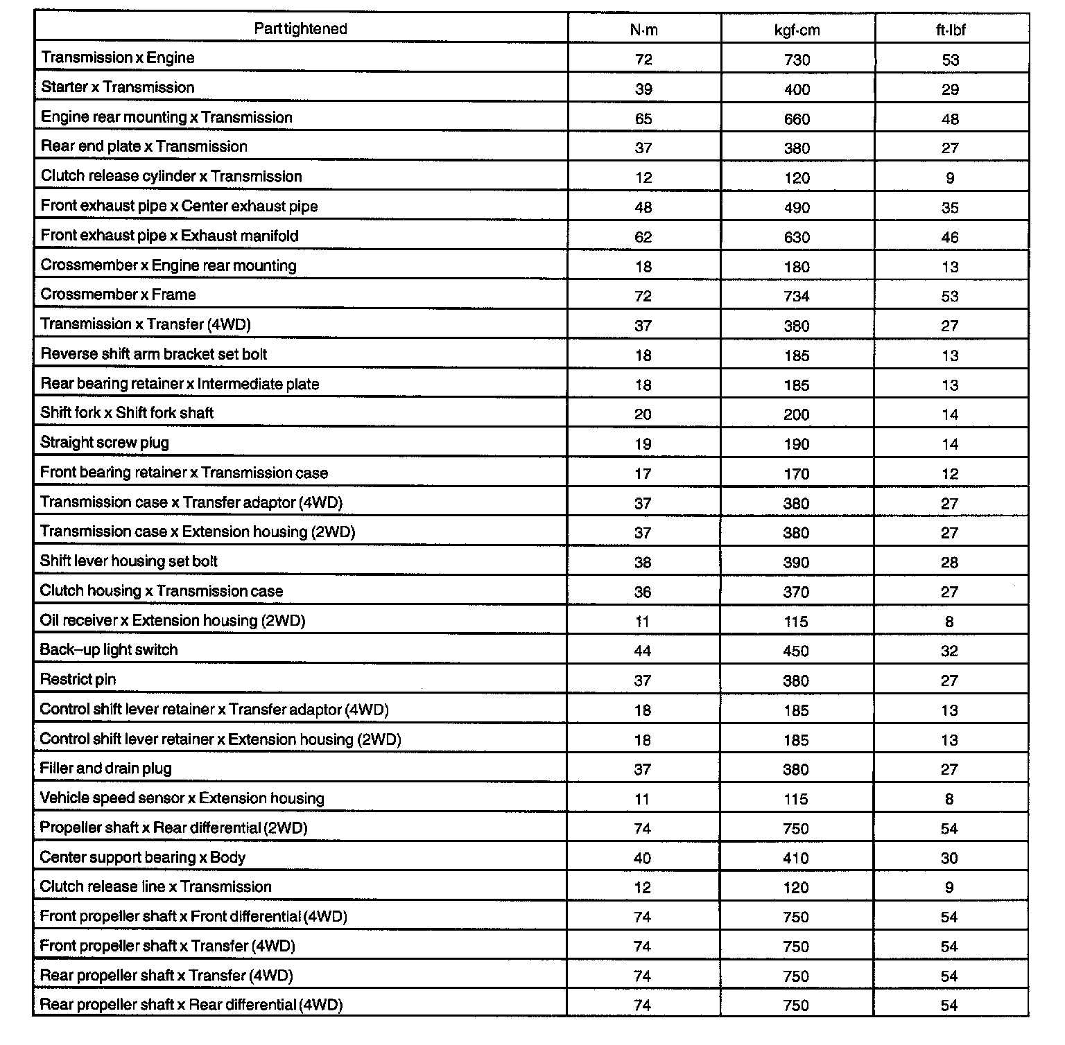 Torque Specification
