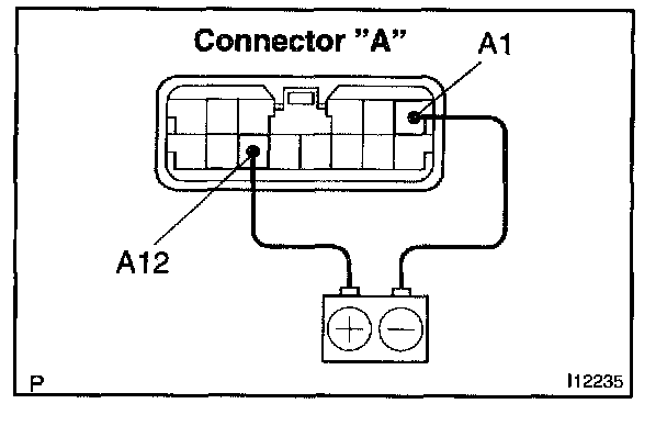 c. Connect the positive (+) lead from the battery to terminal A11 and negative (-) lead to terminal A10, then check that the indicator dimes.