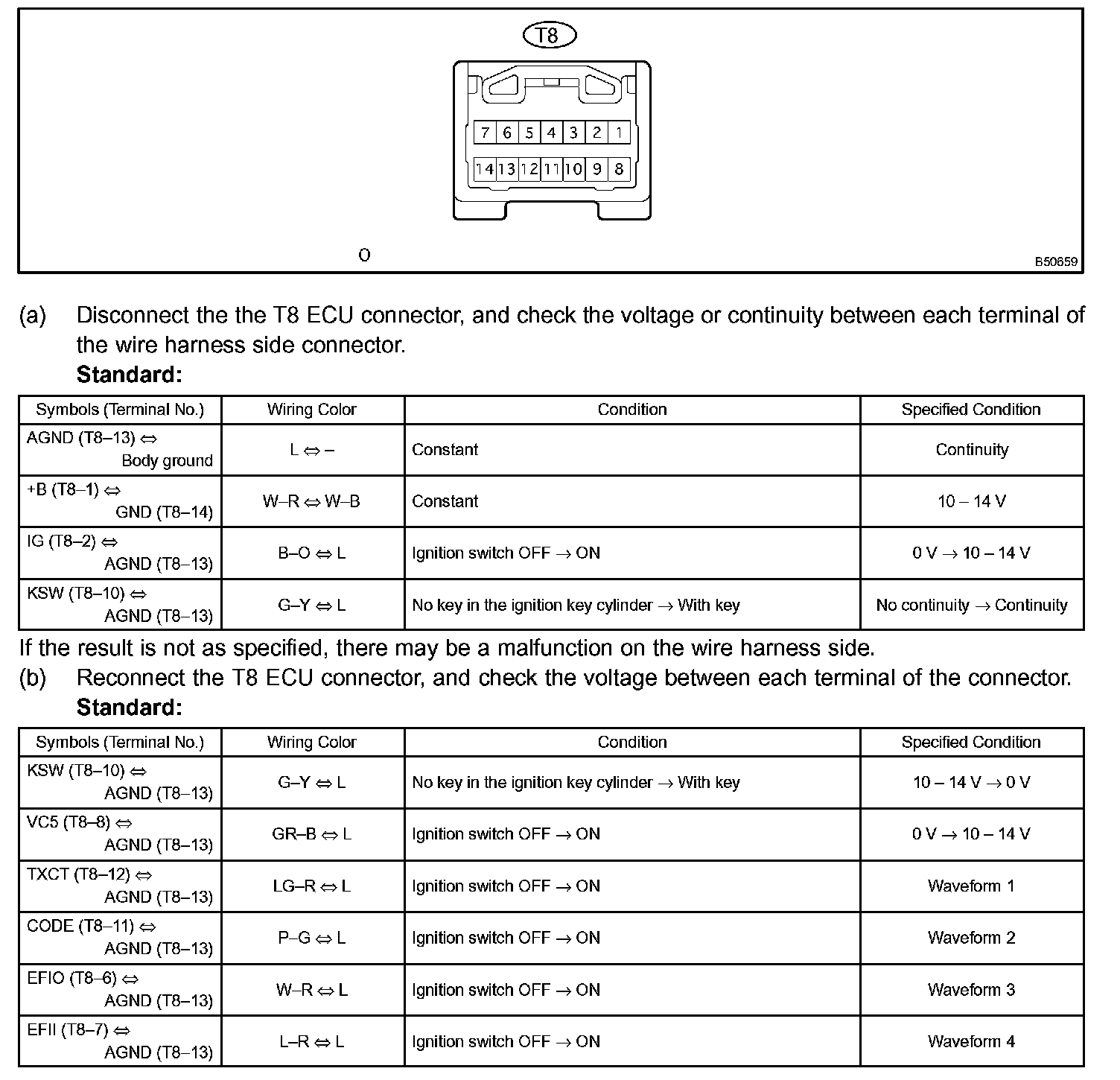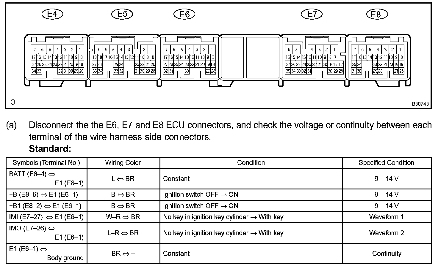 Terminals Of ECU/Pinouts - Check Transponder Key ECU Assy: