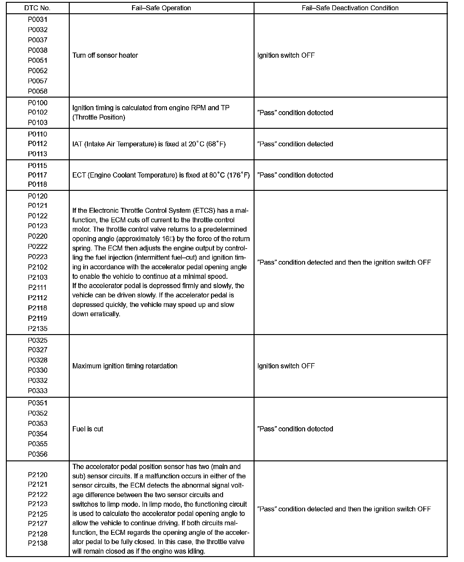 If any of the codes are recorded, the ECM enters the fail-safe mode.