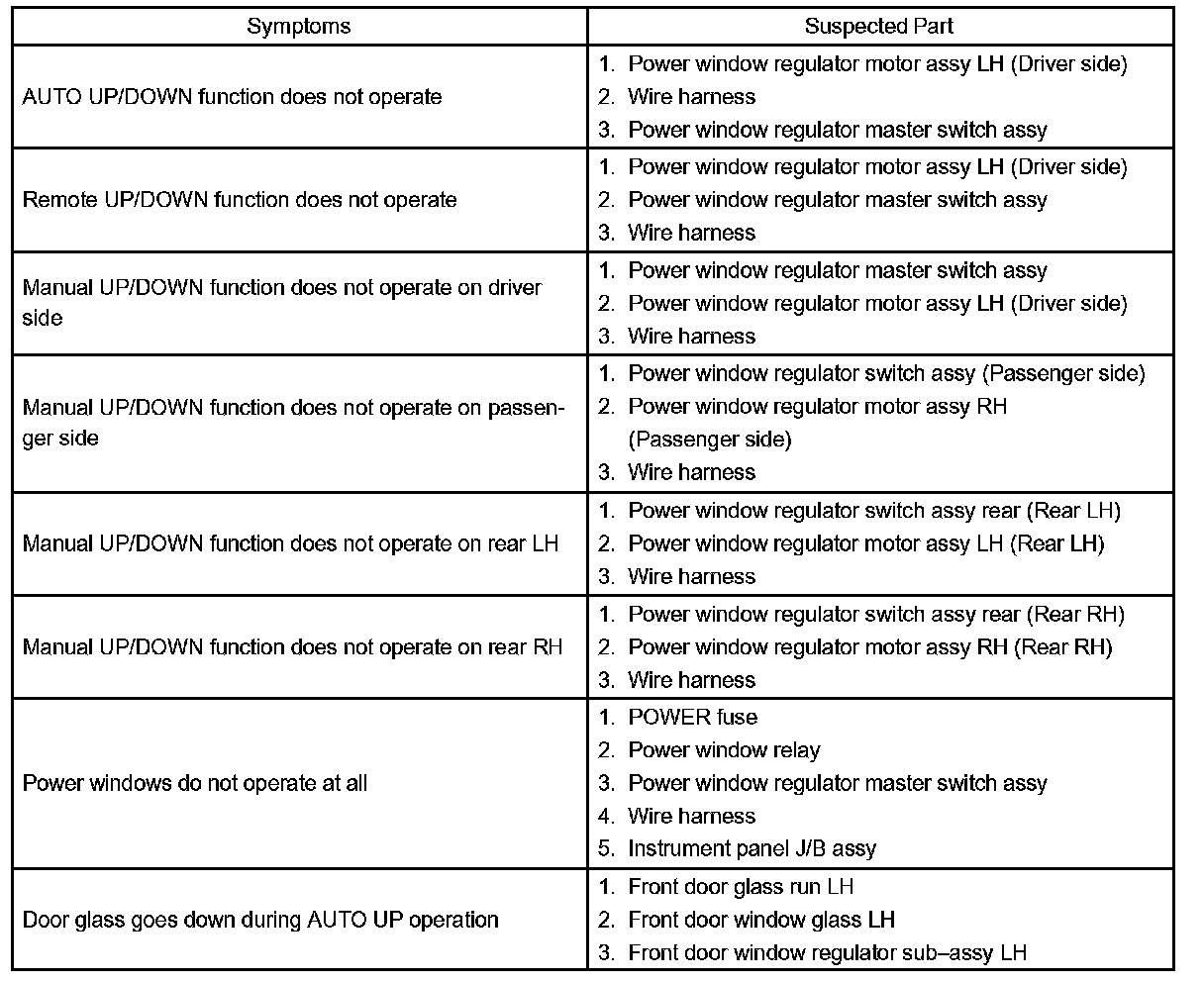 Problem Symptoms Table: