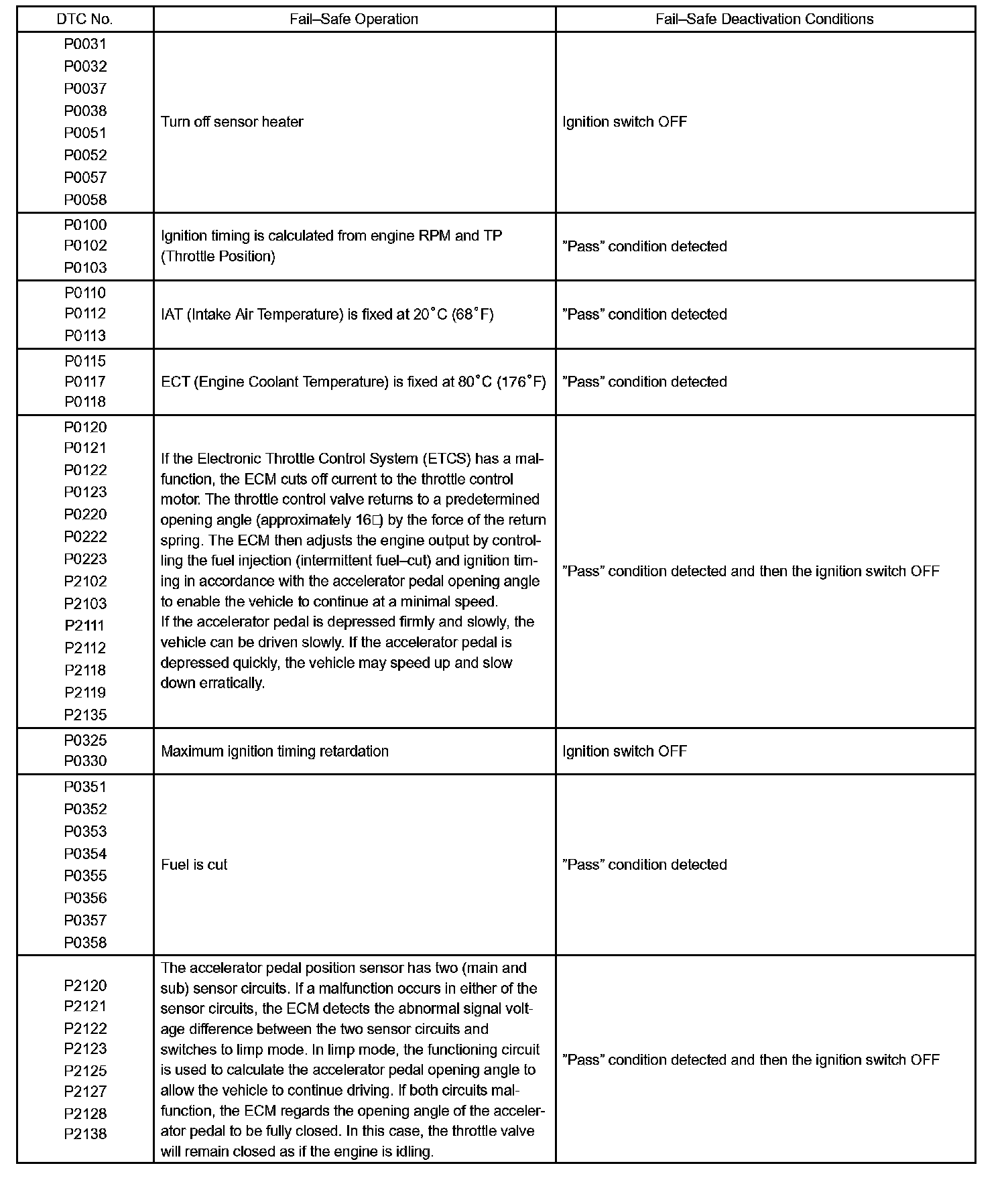 If any of the codes are recorded, the ECM enters the fail safe mode.