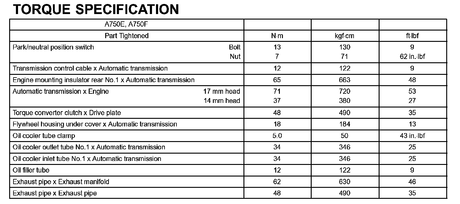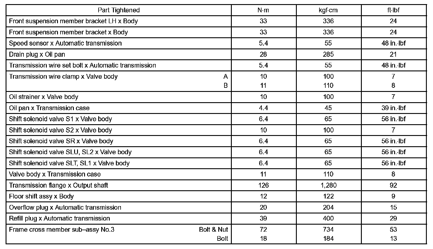 Automatic Transmission/Transaxle - Torque Specification Part 2: