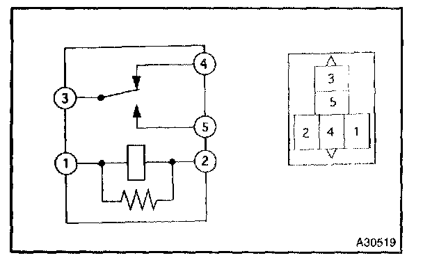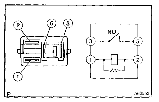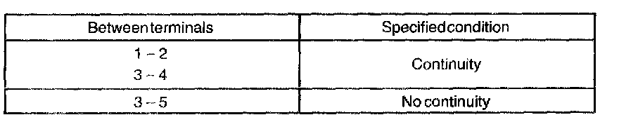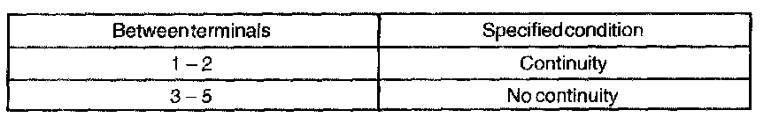 2. Using an ohmmeter, check that there is continuity between terminals 3 and 5 when the between voltage is applied across terminals 1 and 2.