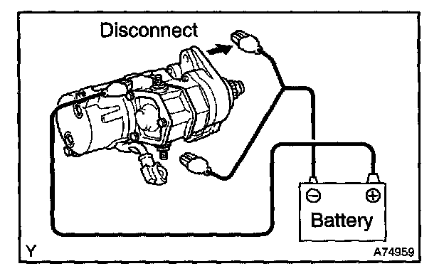 1. Disconnect the negative (-) lead from the switch body. Check that the clutch pinion gear returns inward.