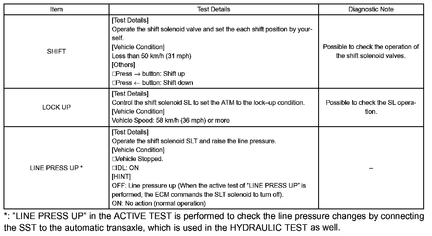 HINT: The pressure values in ACTIVE TEST and HYDRAULIC TEST are different from each other.