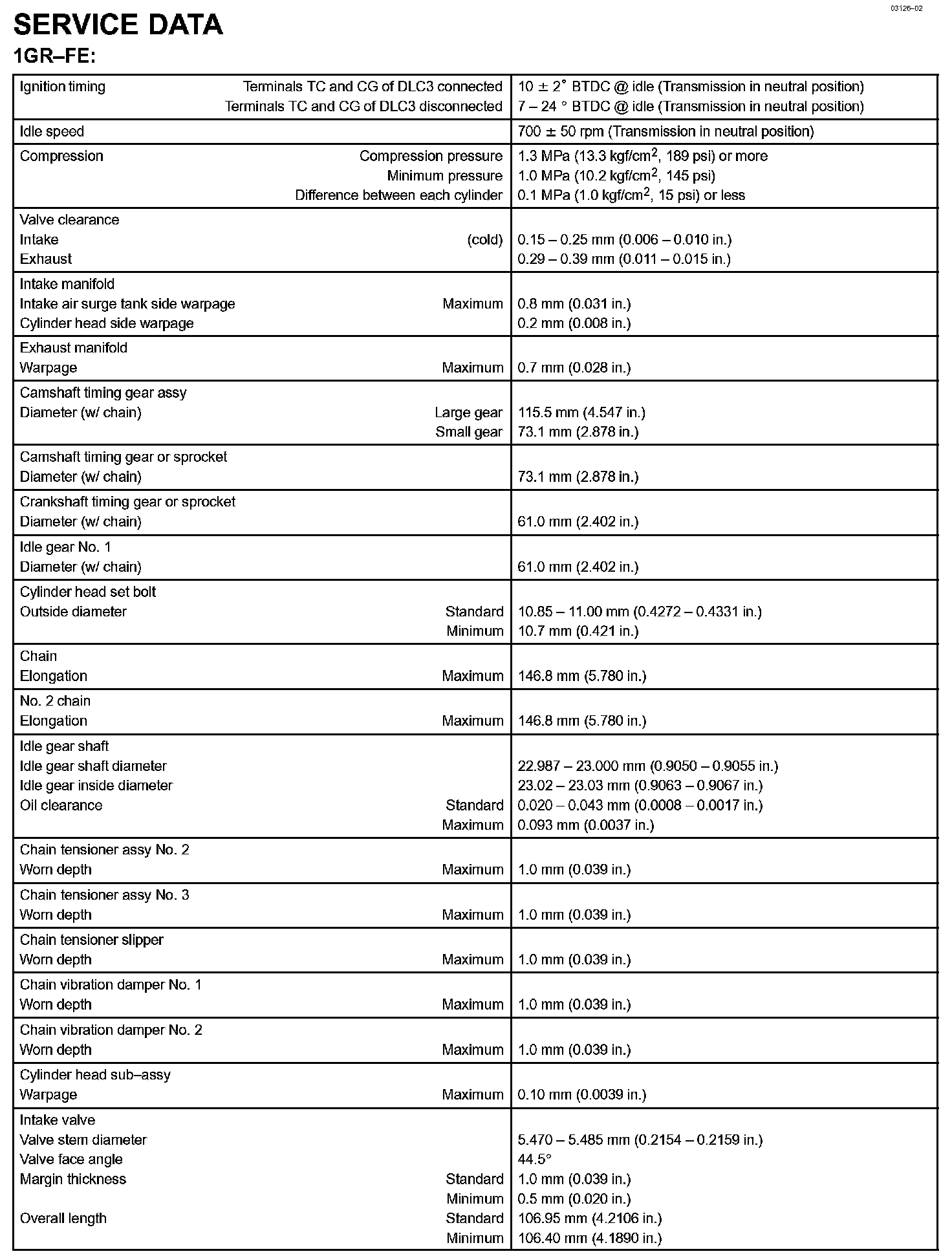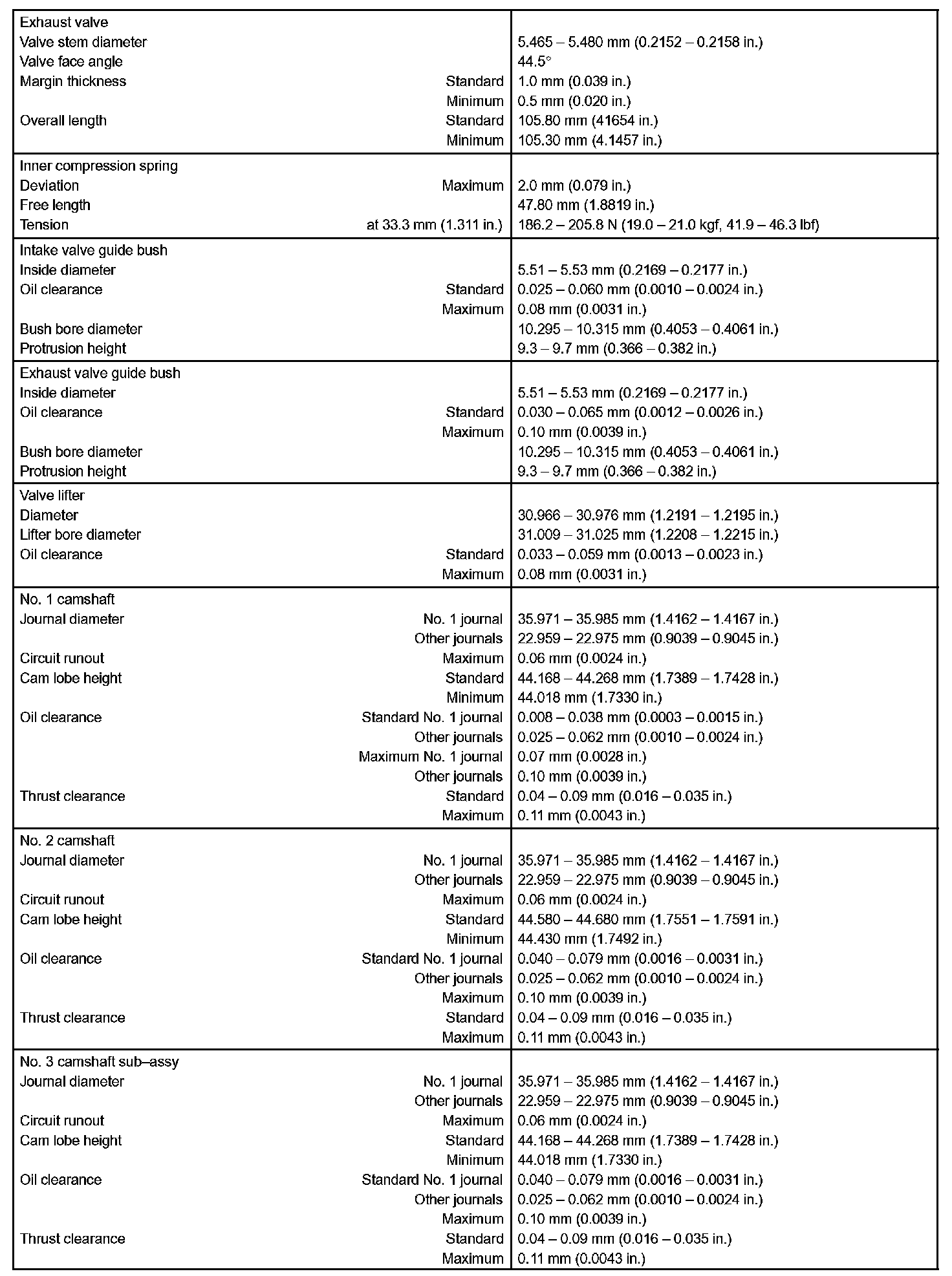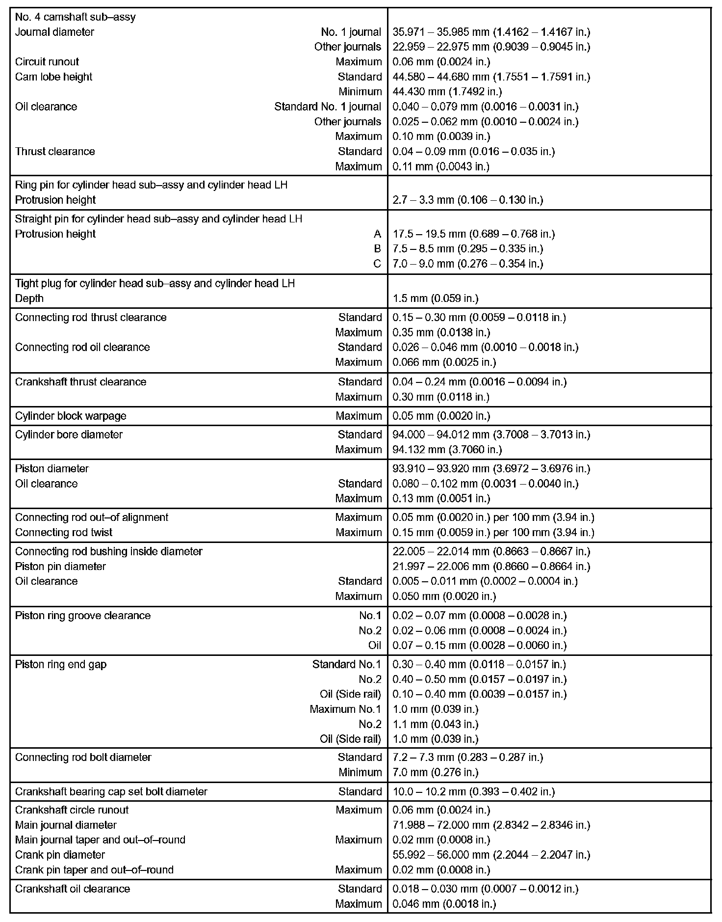 Engine Mechanical - Service Data Part 2:
