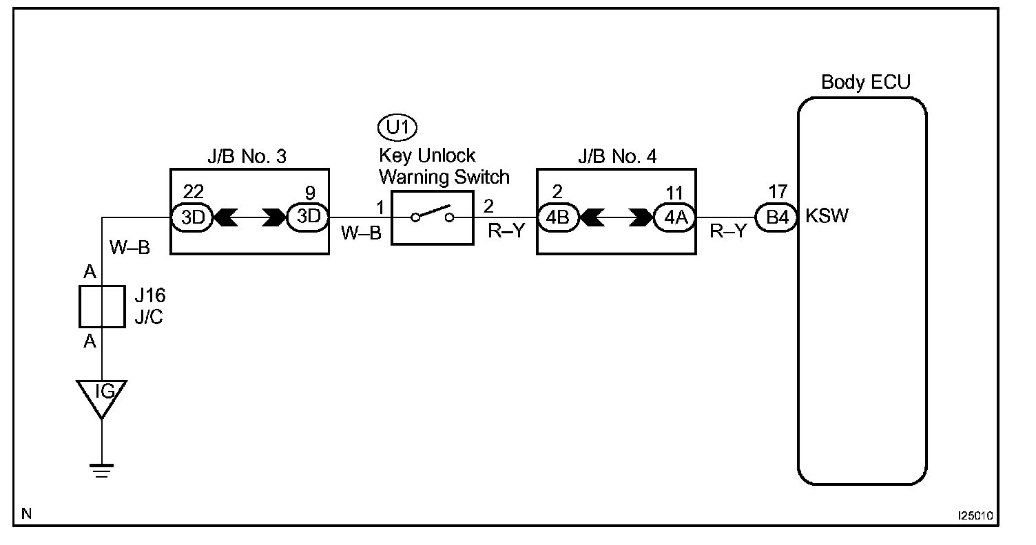 The ECU operates the key confinement prevention function while the key unlock warning switch is on.