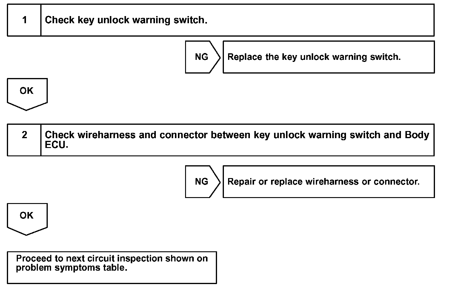 The key unlock warning switch goes on when the ignition key is inserted in the key cylinder and goes off when the ignition key is removed.