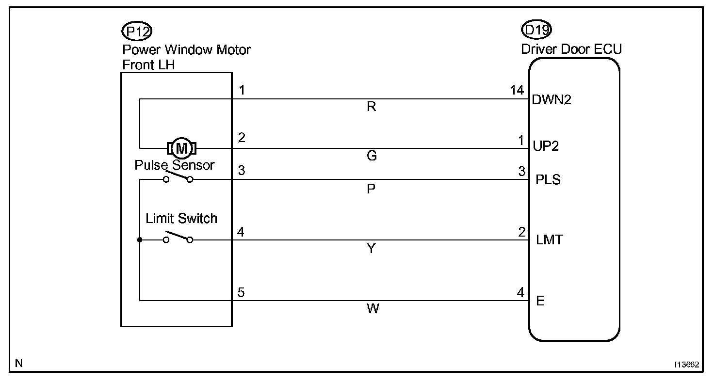 CIRCUIT DESCRIPTIONJam protection limit switch is built-in the power window motor. This switch functions to turn "OFF" before the top dead center, and ECU reads this "OFF" signal resulting in closing the window fully.