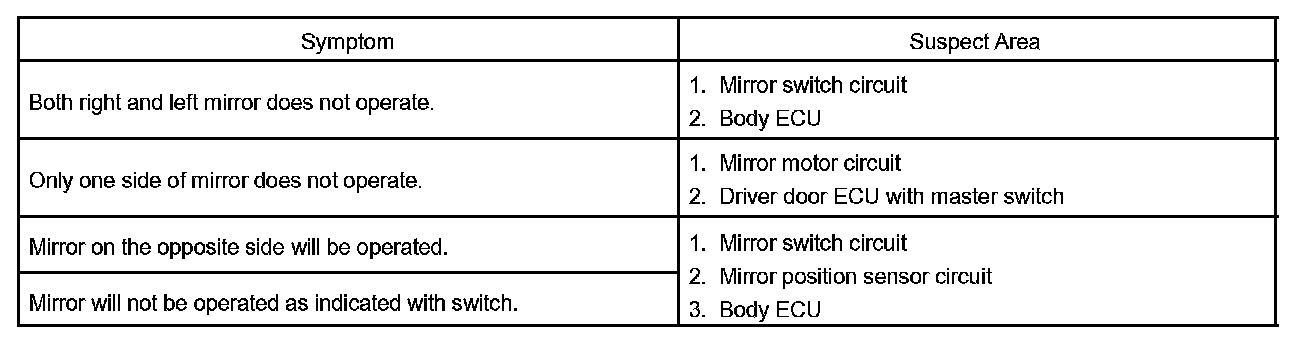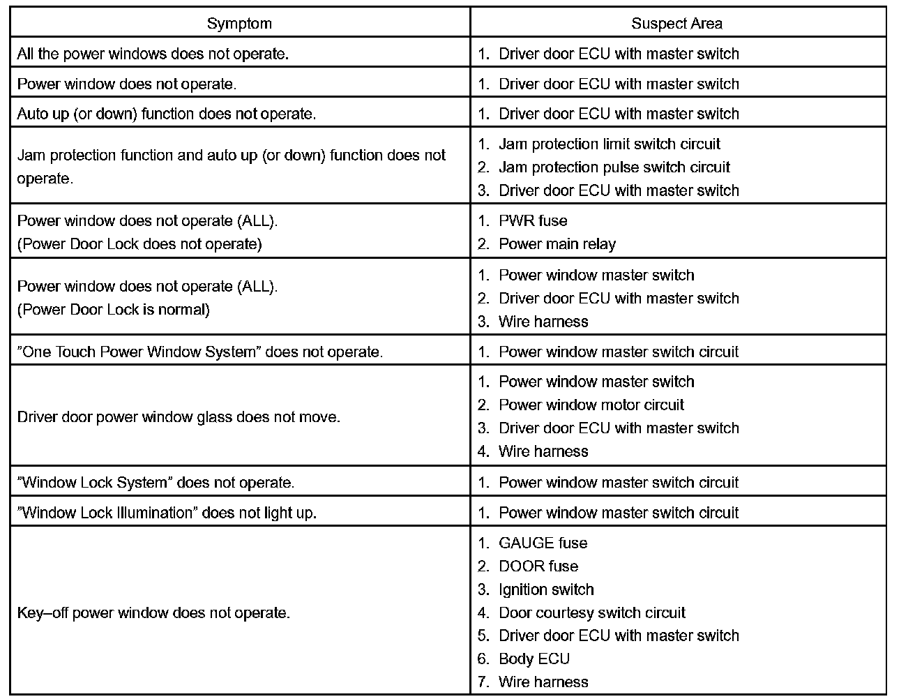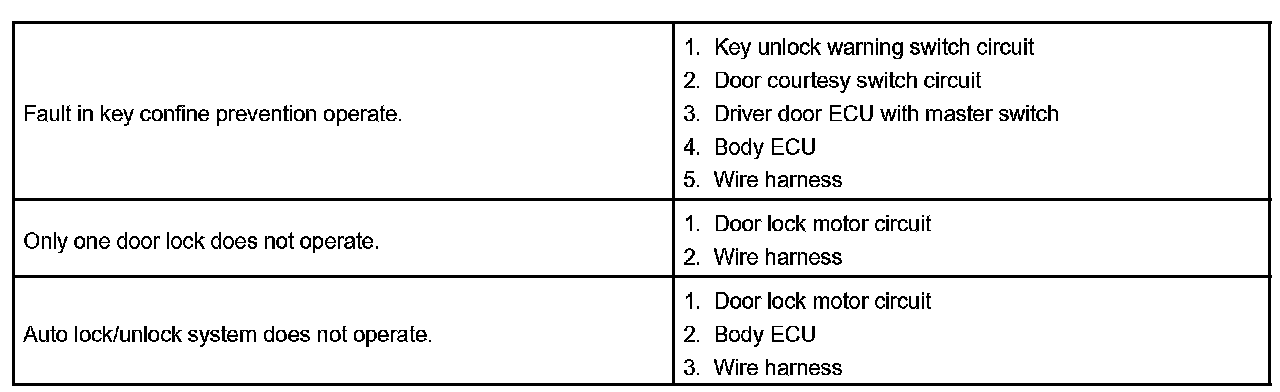 Problem Symptom Table - Power Door Lock Control System Part 1: