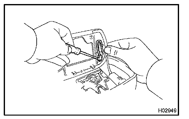 c. Using a screwdriver, remove the inside handle bezel as shown in the illustration.