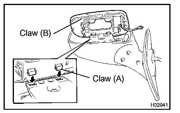 b. Connect the claws (A) and set the mirror to the mirror body.