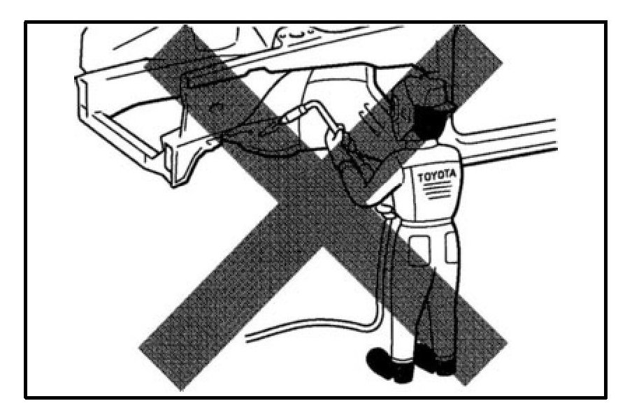 Toyota prohibits the use of the heat repair method on body structure panels when repairing a vehicle damaged in a collision.