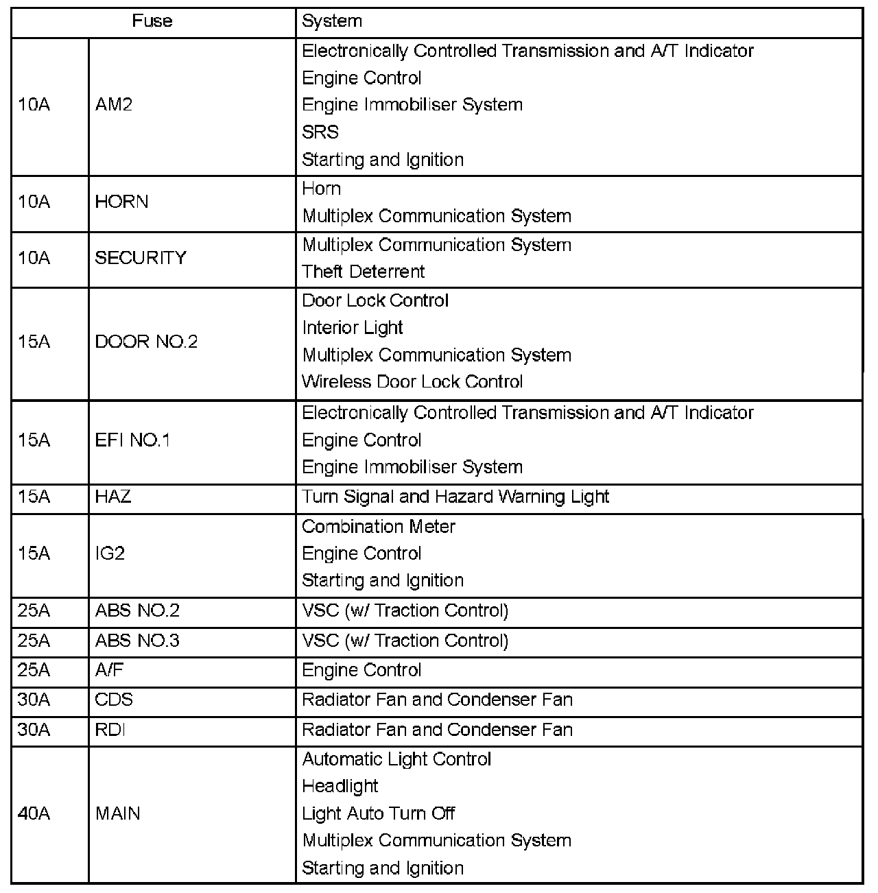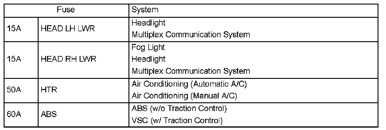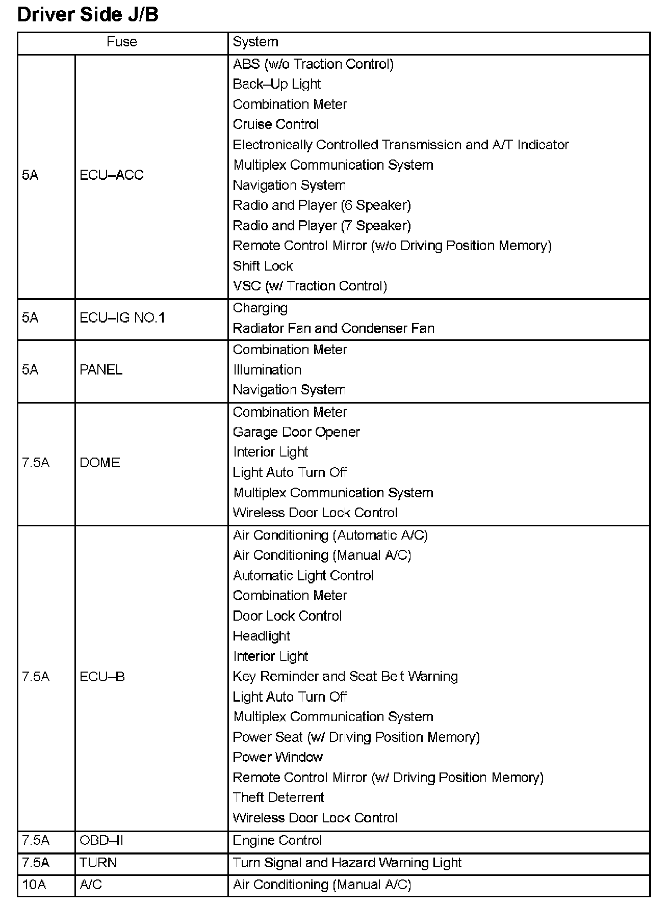 Interior Panel Fuse Identification