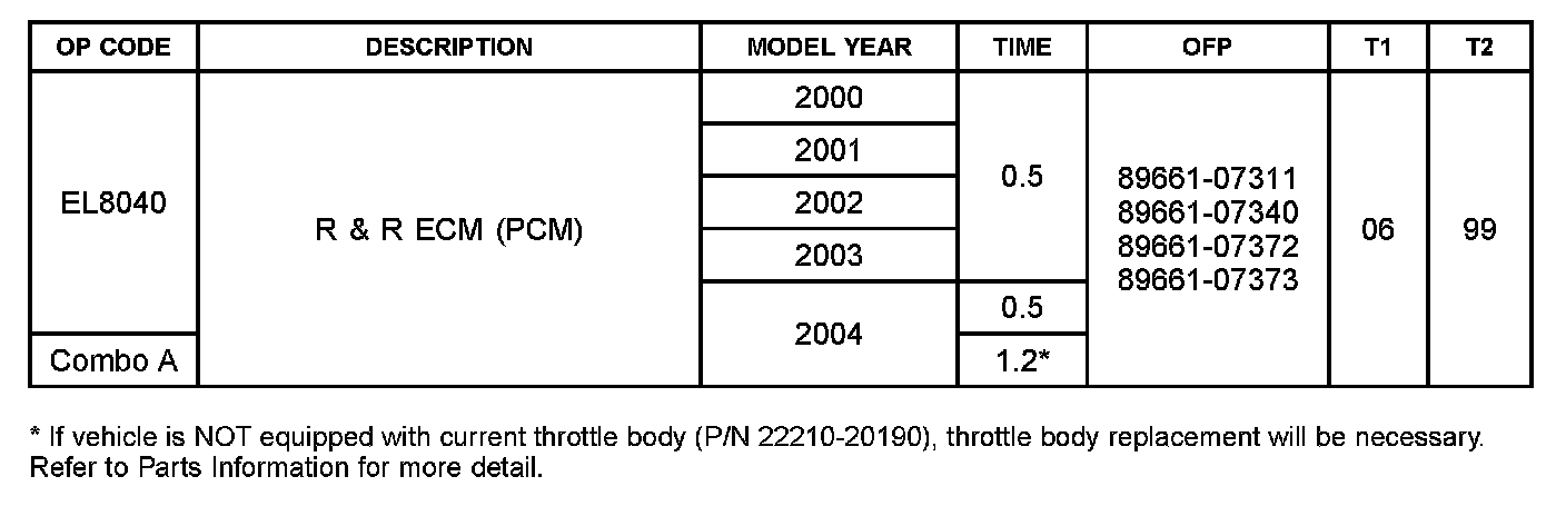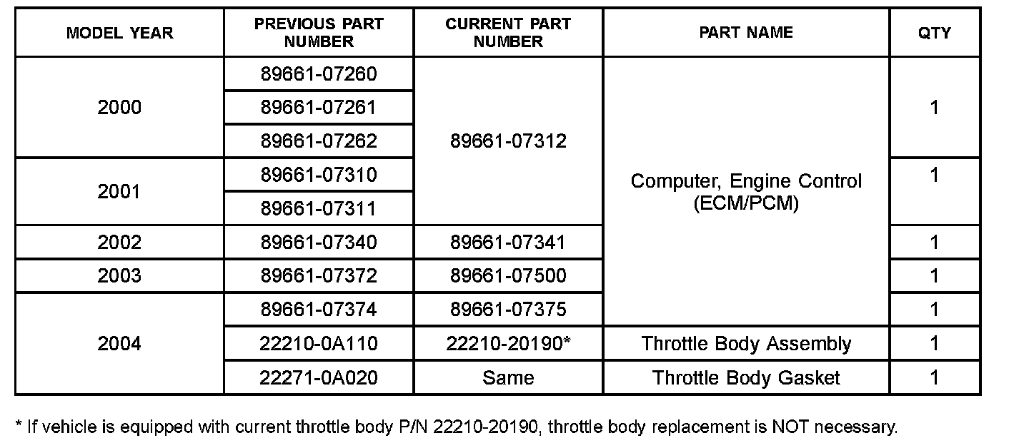 ^ Applicability has been updated to include 2003 and 2004 model years.