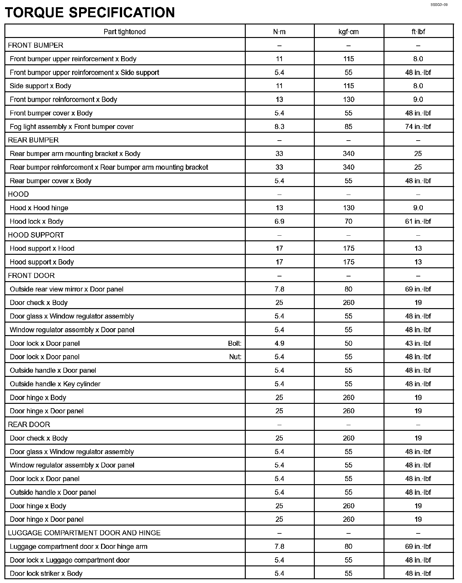 Body - Torque Specification Part 1: