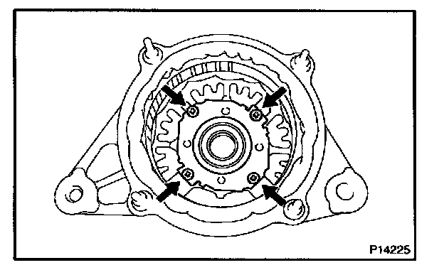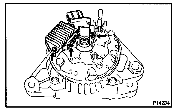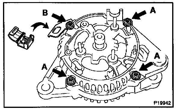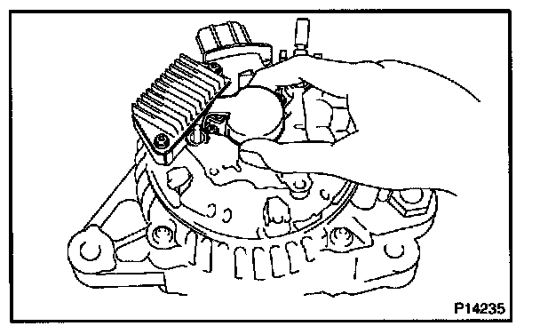 b. Remove the 5 screws, brush holder and voltage regulator.