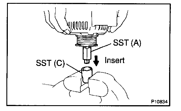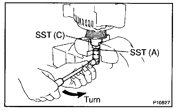 e. Insert SST (B) into SST (C), and attach the pulley nut to SST (C).