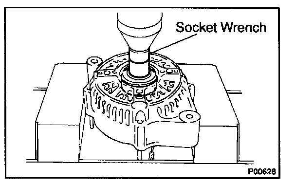 b. Using a 29 mm socket wrench and press, slowly press in the rectifier end frame.