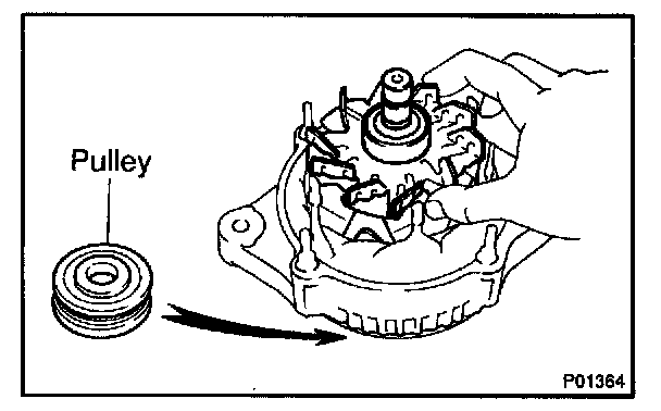 a. Install the pulley to the rotor shaft by tightening the pulley nut by hand.