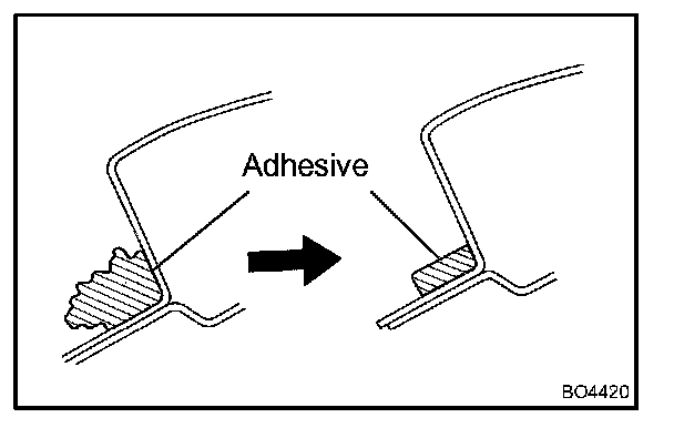 NOTE: Leave of the adhesive on the body as much as possible when cutting off the glass.