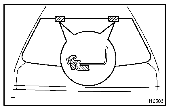 b. Hold the back window glass in place securely with a protective tape or equivalent until the adhesive hardens.