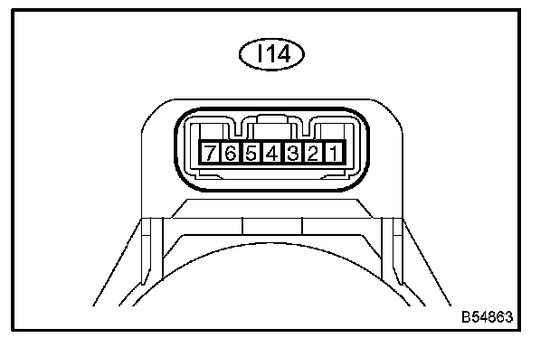 a. Disconnect the I14 transponder key amplifier connector, and check the continuity of each terminal of the wire harness side connector.