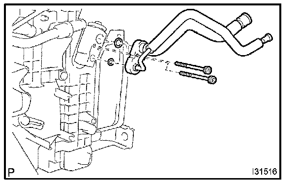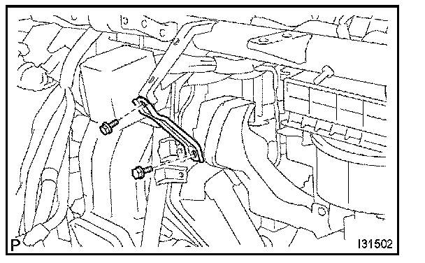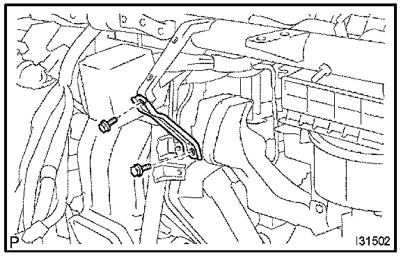 b. Using a hexagon wrench 4 mm (0.16 in.), remove the 2 hexagon bolts and air conditioning tube assembly.