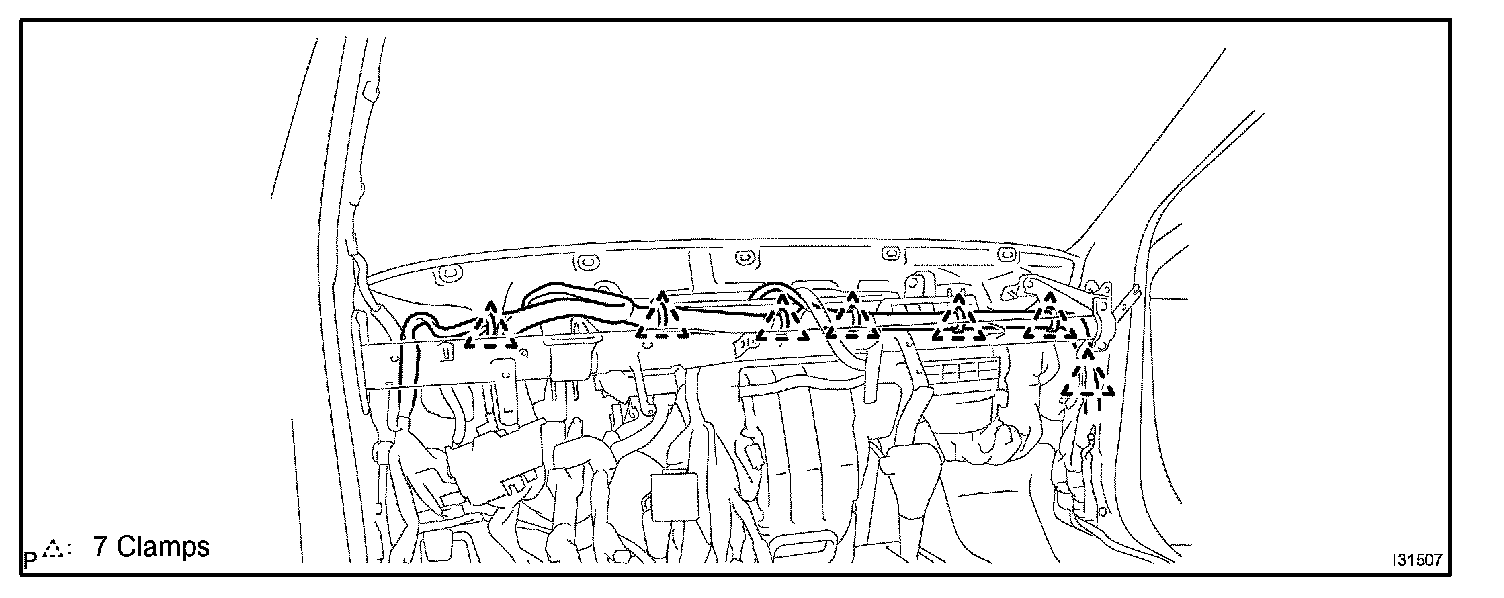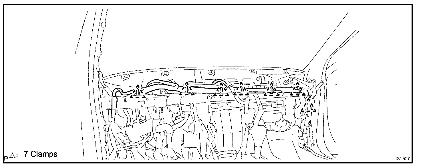 a. Disconnect the 7 clamps and the wire harness.