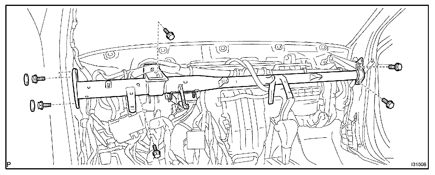 a. Install the instrument panel reinforcement with the 7 bolts and 3 caps.