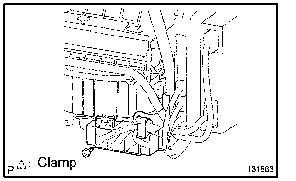 HINT: Confirm the direction of the piping clamp claw and SST using the illustration showing on the caution label.