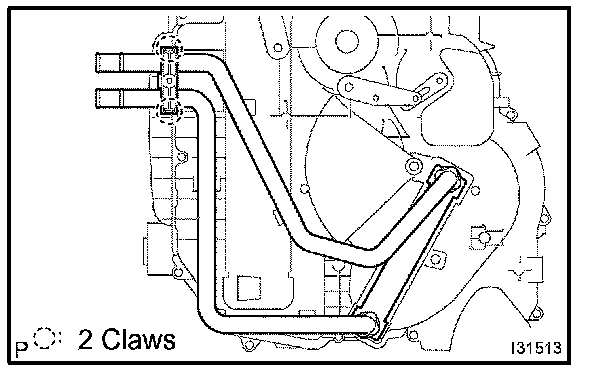 a. Using pliers, grip the claws of clip and slide the clip and disconnect the heater outlet water hose.