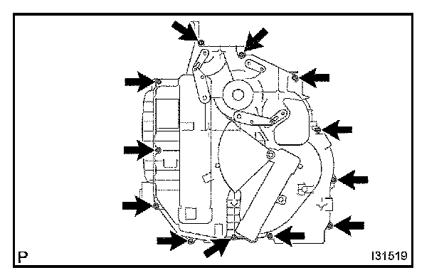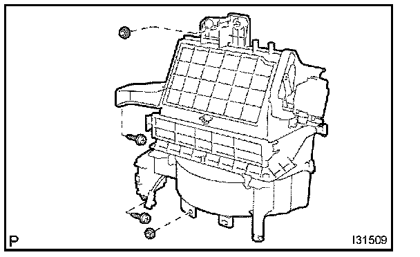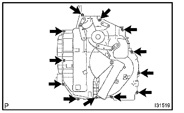 b. Remove the 12 screws and heater case LH.