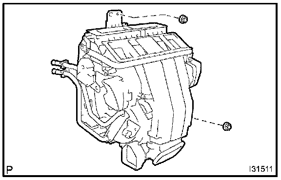 c. Remove the cooler evaporator sub-assembly No.1 from the heater case RH.