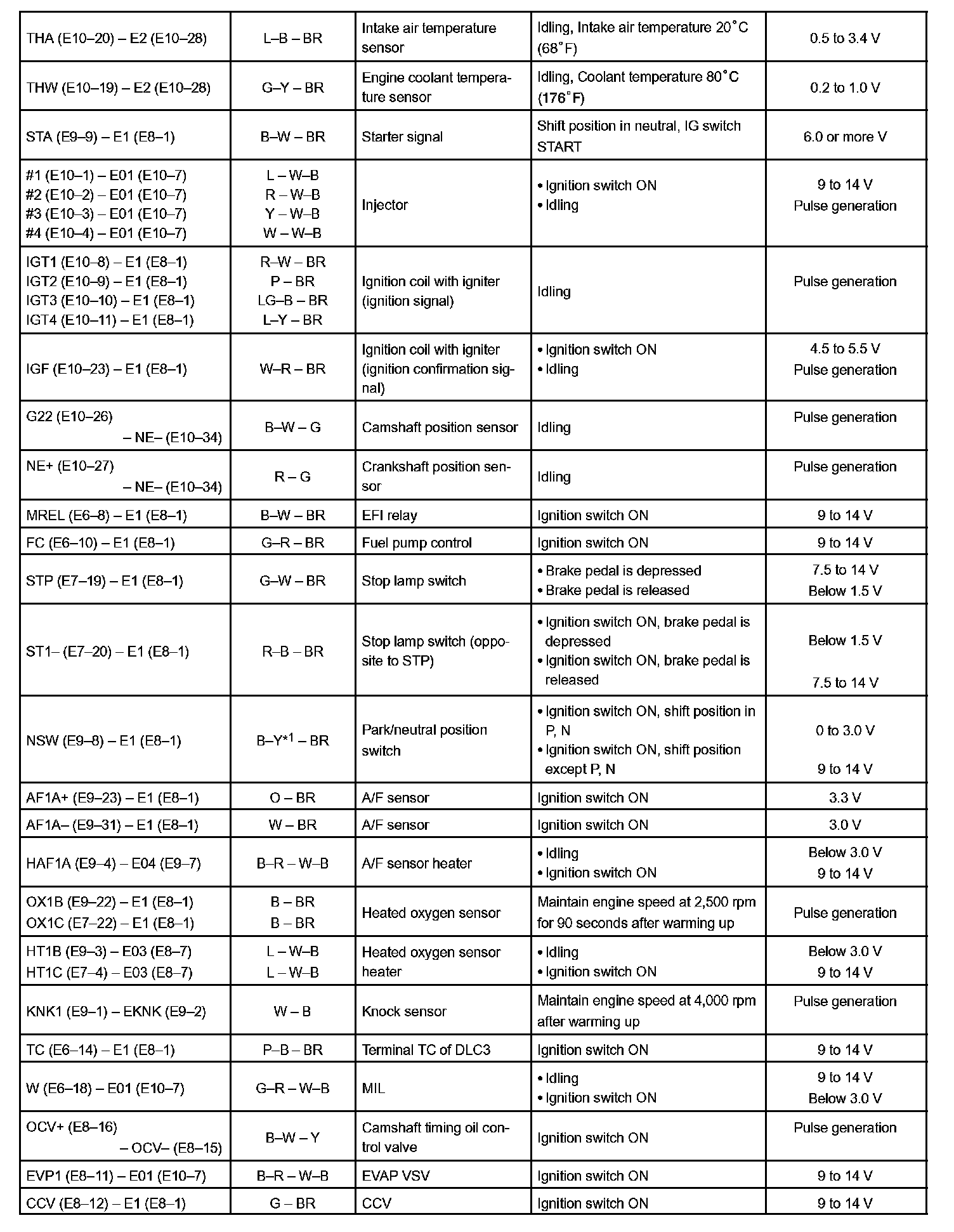 Pinout Values and Diagnostic Parameters