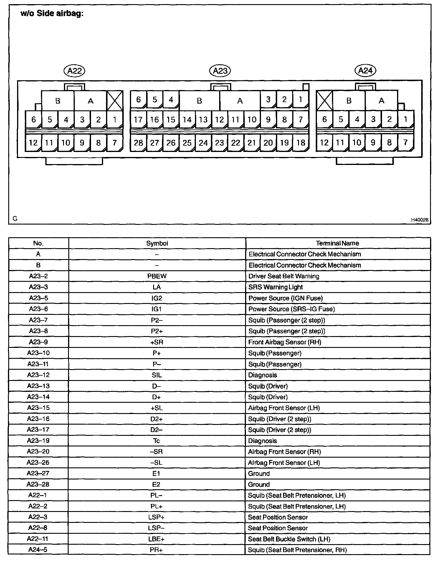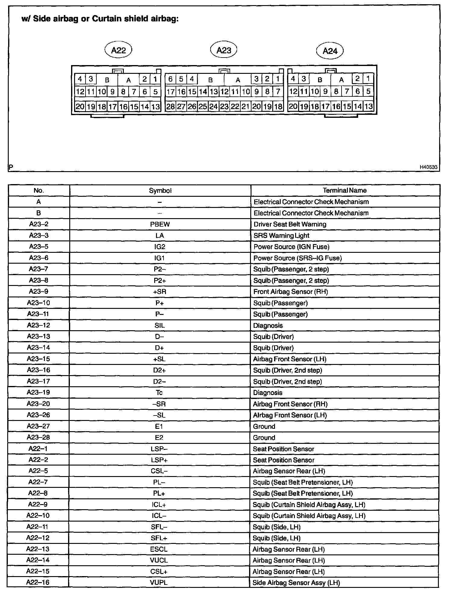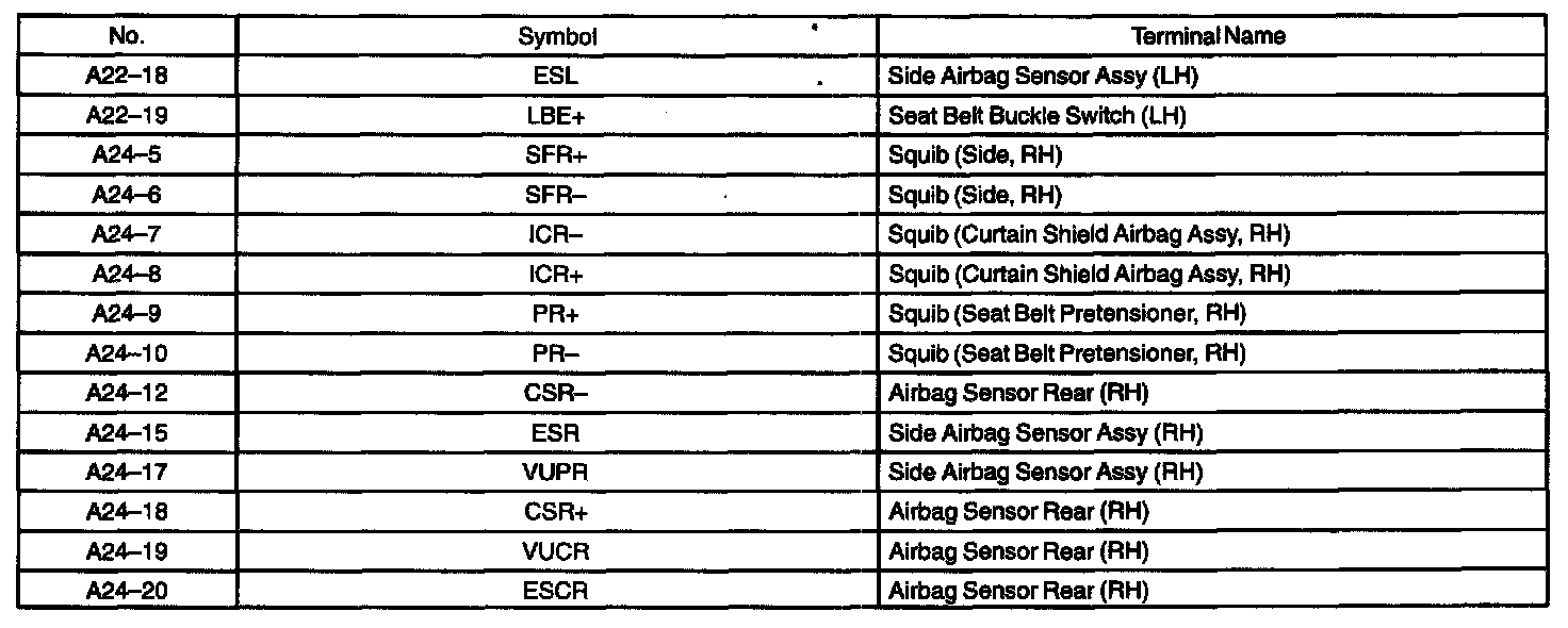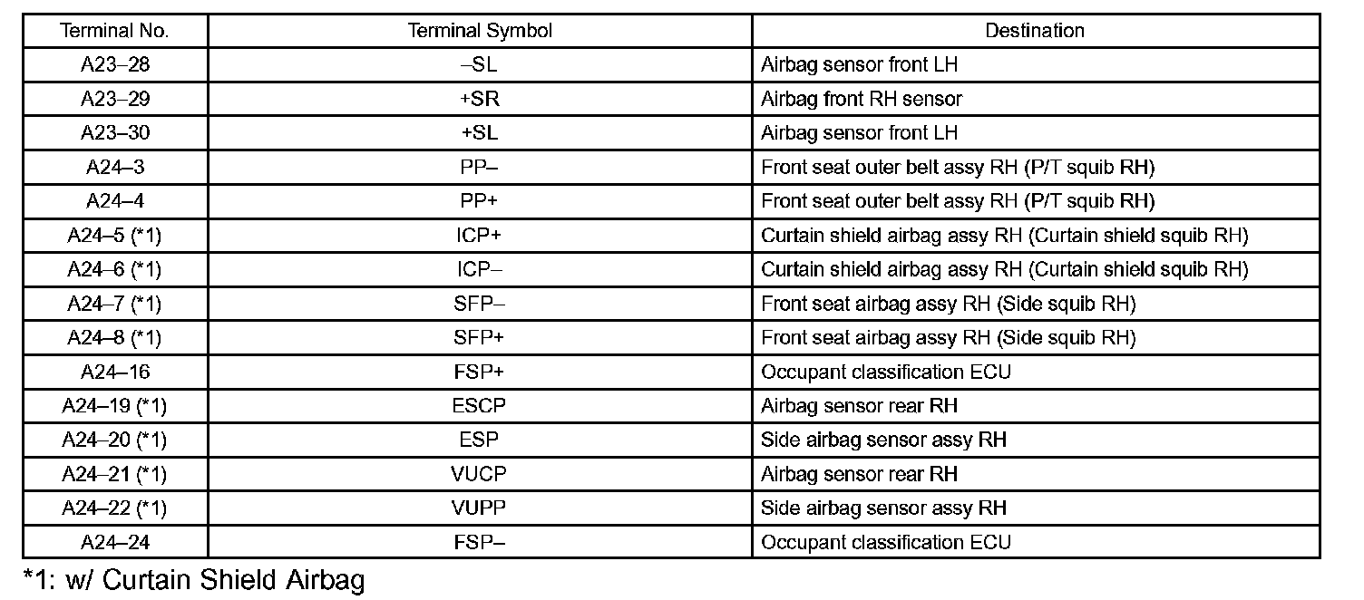 Terminals Of ECU/Pinouts - Airbag Sensor Assy Center Part 1: