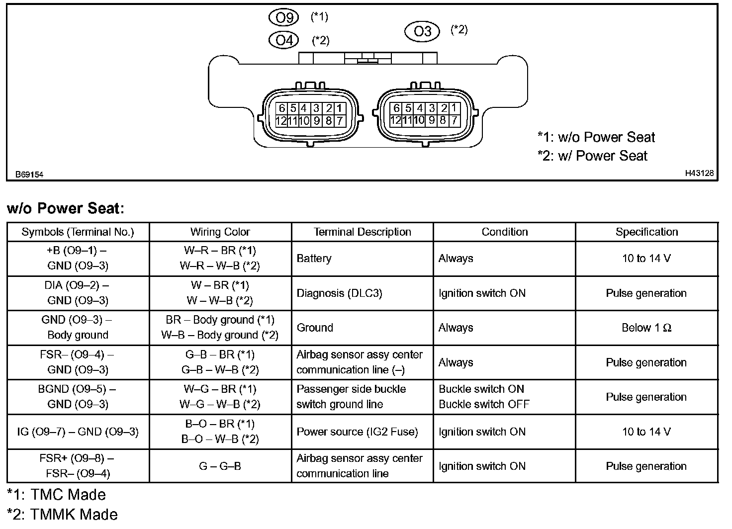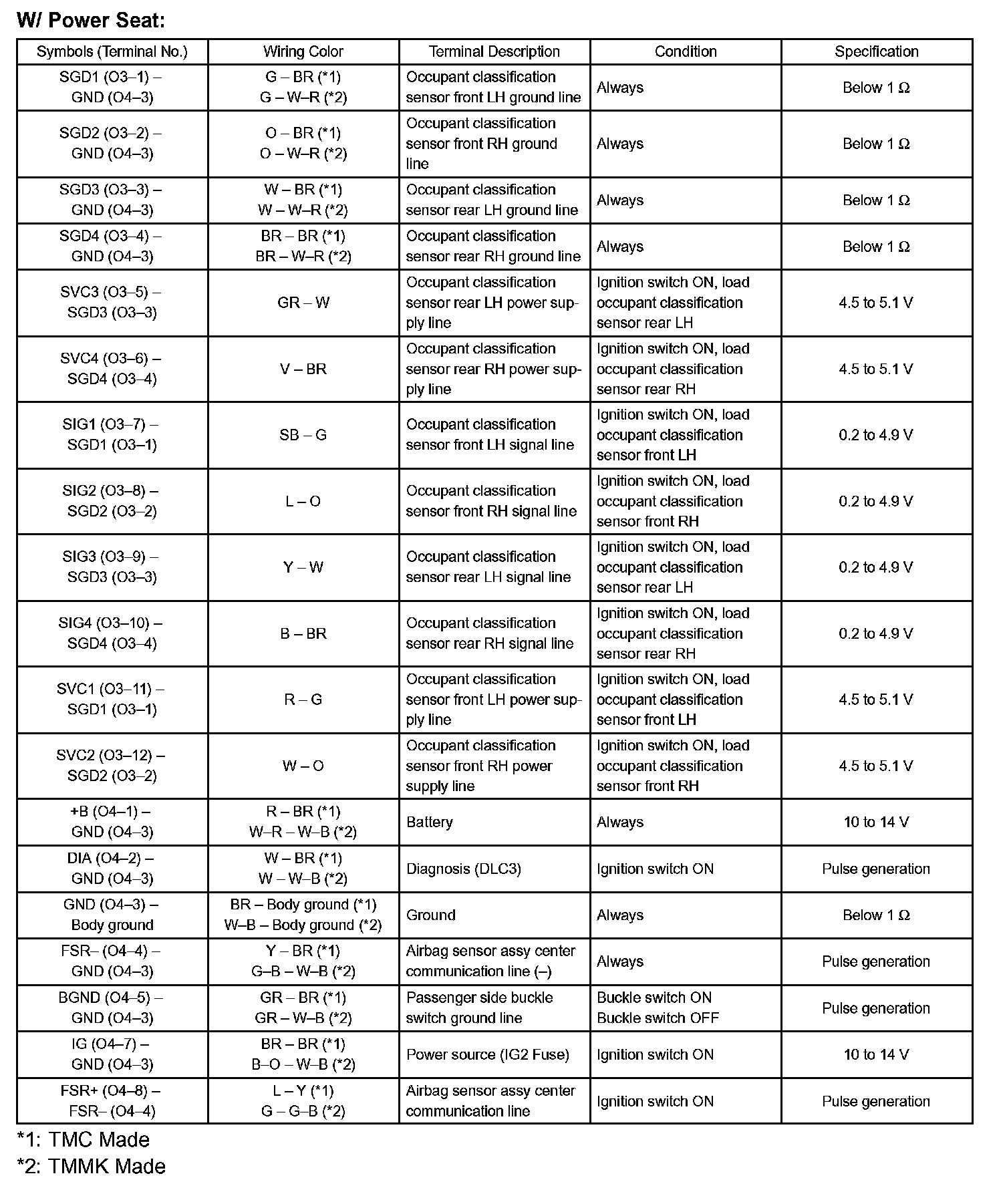 Terminals Of ECU/Pinouts - Occupant Classification ECU Part 2: