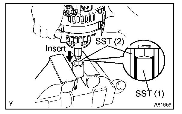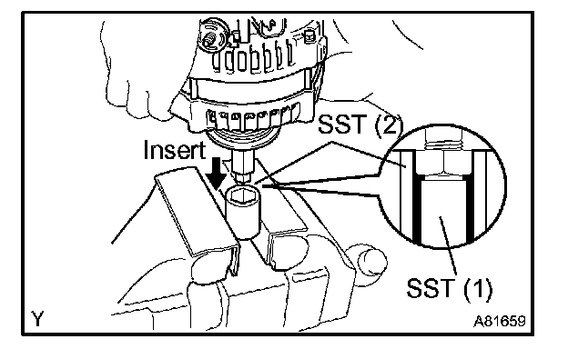 c. Insert SST (1-A, B) into SST (2), and attach the pulley nut to SST (2).