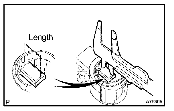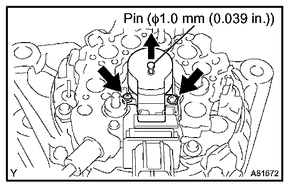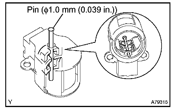 a. While pushing the 2 brushes to inside the brush holder, insert a pin (dia 1.0 mm (0.039 in.)) into the brush holder hole.