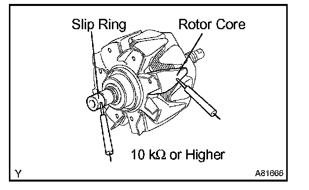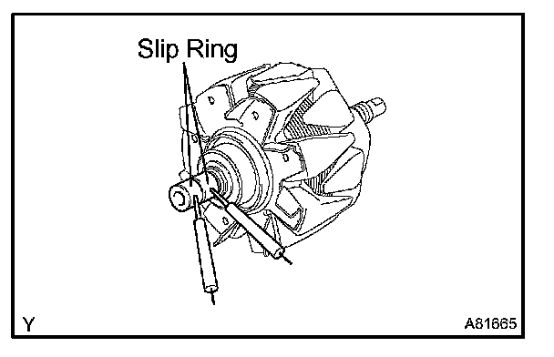 1. Using an ohmmeter, check the resistance between the slip ring and the rotor core.