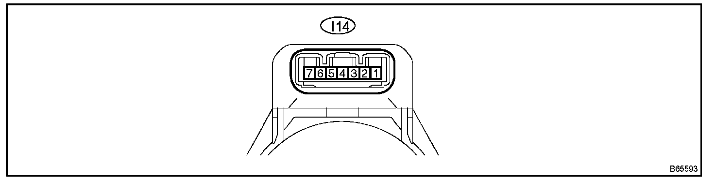 b. Reconnect the I14 amplifier connector, and check the continuity or voltage of each terminal of the connector.